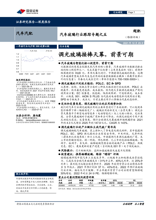 【国信证券】【20211225】汽车汽配行业深度报告:汽车玻璃行业跟踪专题之五,调光玻璃接棒天幕,前景可期-29页