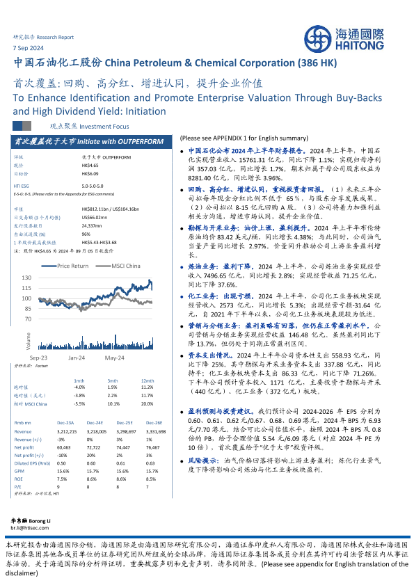 【海通国际】【20240907】中国石油化工股份(0386.HK)首次覆盖:回购、高分红、增进认同,提升企业价值-15页