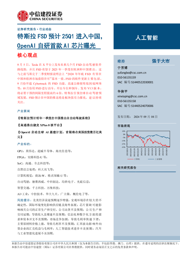 【中信建投证券】【20240908】人工智能行业:特斯拉FSD预计25Q1进入中国,OpenAI自研首款AI芯片曝光-15页