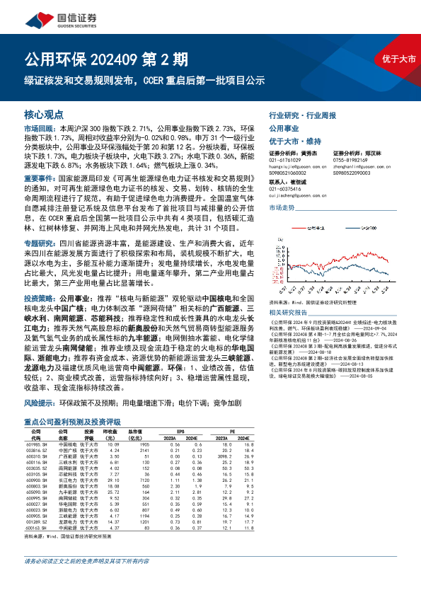【国信证券】【20240909】公用环保行业202409第2期:绿证核发和交易规则发布,CCER重启后第一批项目公示-28页