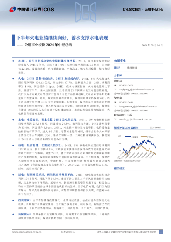【银河证券】【20240906】公用事业行业板块2024年中报总结-23页