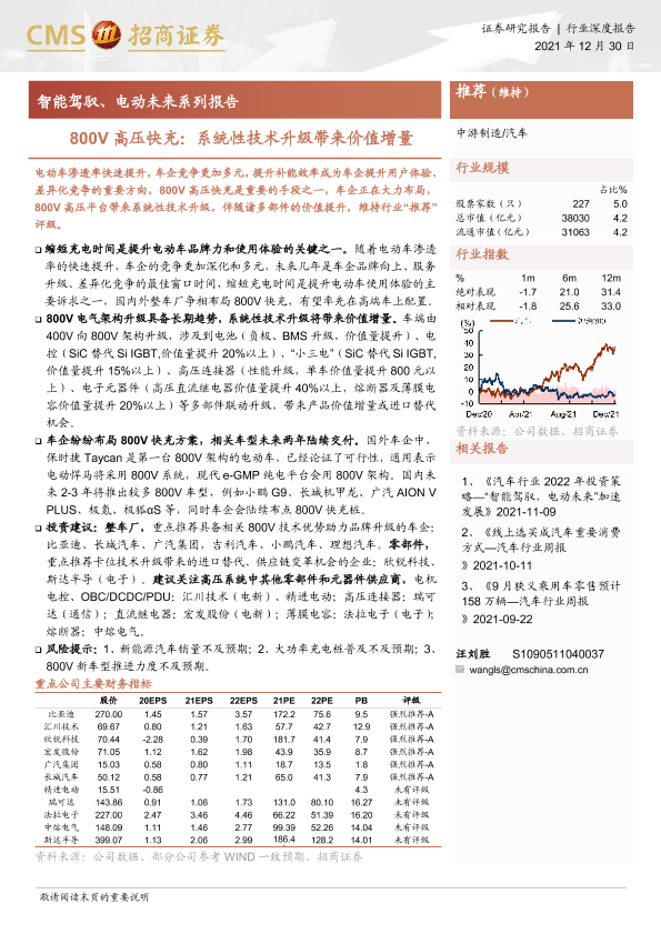 【海通证券】【20211230】汽车行业智能驾驭、电动未来系列报告:800V高压快充,系统性技术升级带来价值增量-30页