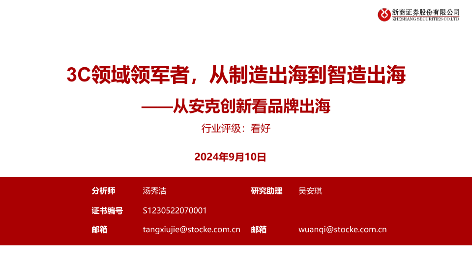 【浙商证券】【20240910】制造行业从安克创新看品牌出海:3C领域领军者,从制造出海到智造出海-35页