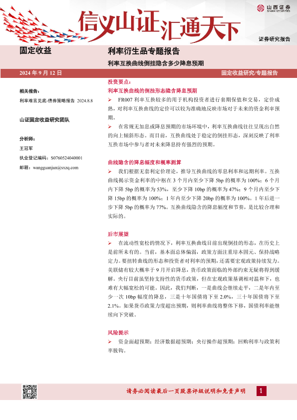 【山西证券】【20240912】利率衍生品专题报告:利率互换曲线倒挂隐含多少降息预期-20页