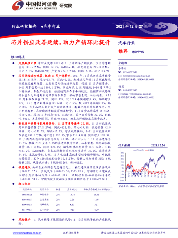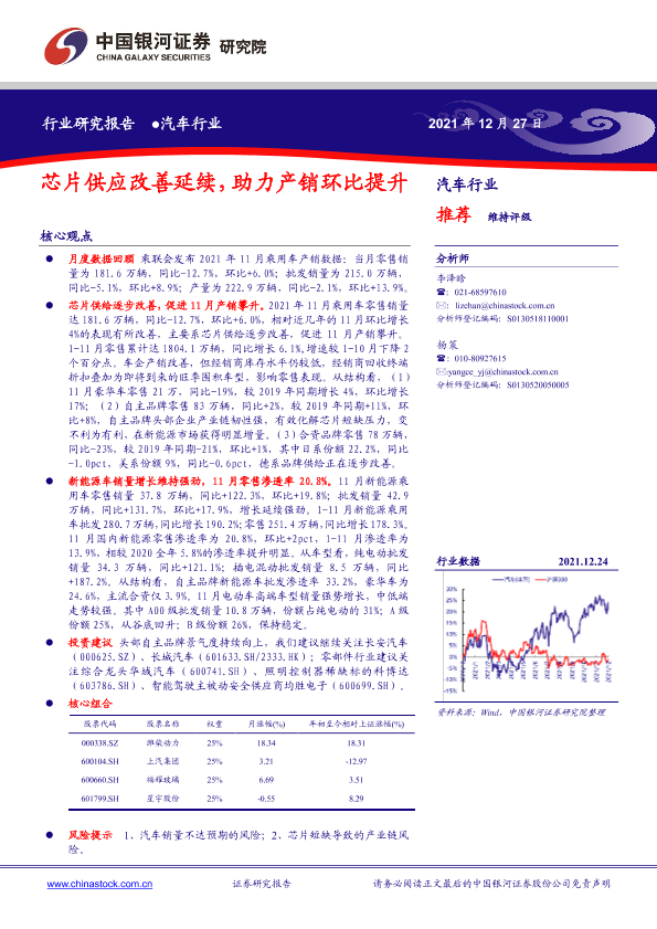 【银河证券】【20211227】汽车行业:芯片供应改善延续,助力产销环比提升-18页