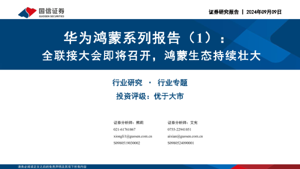 【国信证券】【20240909】华为鸿蒙系列报告(1):全联接大会即将召开,鸿蒙生态持续壮大-25页