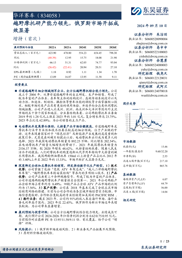 【东吴证券】【20240910】华洋赛车(834058)越野摩托研产能力领先,俄罗斯市场开拓成效显著-23页