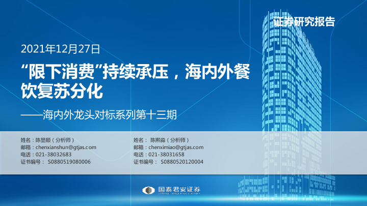 【国泰君安证券】【20211227】海内外龙头对标系列第十三期:“限下消费”持续承压,海内外餐饮复苏分化-26页