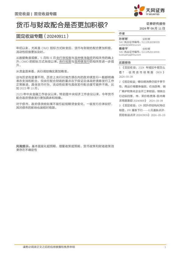 【天风证券】【20240911】固定收益专题:货币与财政配合是否更加积极?-12页
