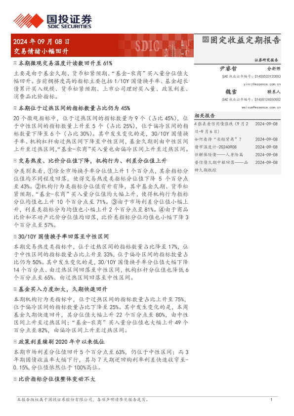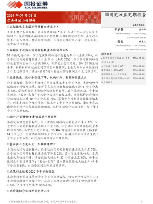 【国投证券】【20240908】固定收益定期报告:交易情绪小幅回升-10页
