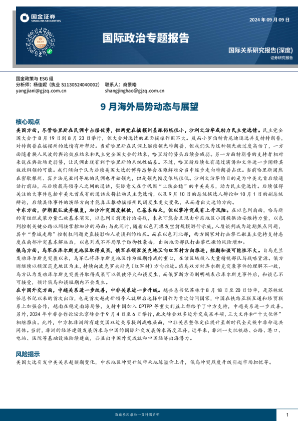 【国金证券】【20240909】国际政治专题报告:9月海外局势动态与展望-17页