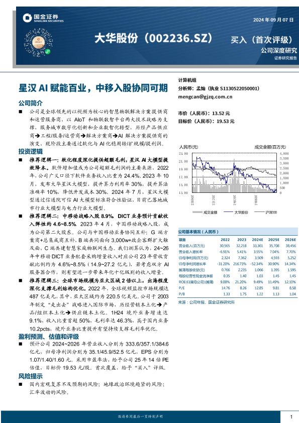 【国金证券】【20240907】大华股份星汉AI赋能百业,中移入股协同可期-24页