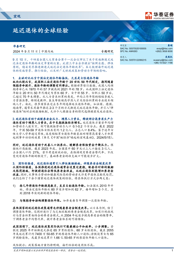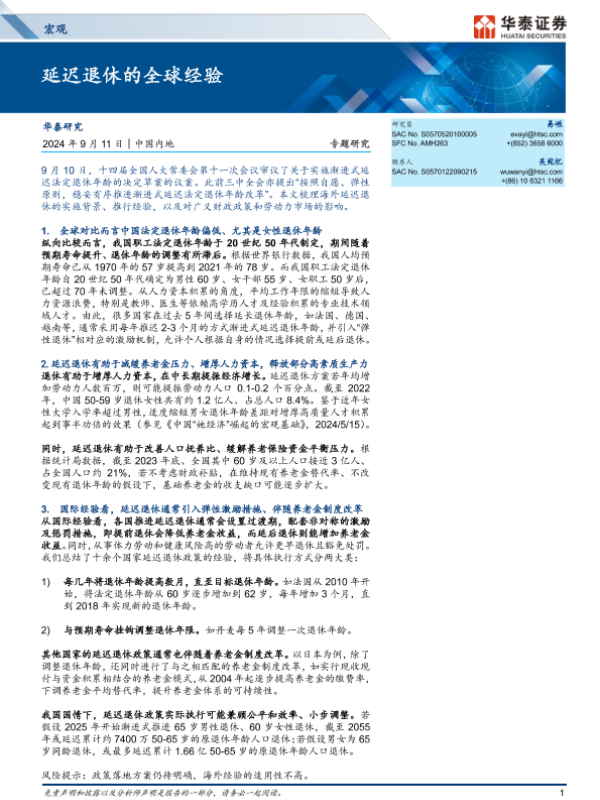 【华泰证券】【20240911】宏观专题研究:延迟退休的全球经验-16页