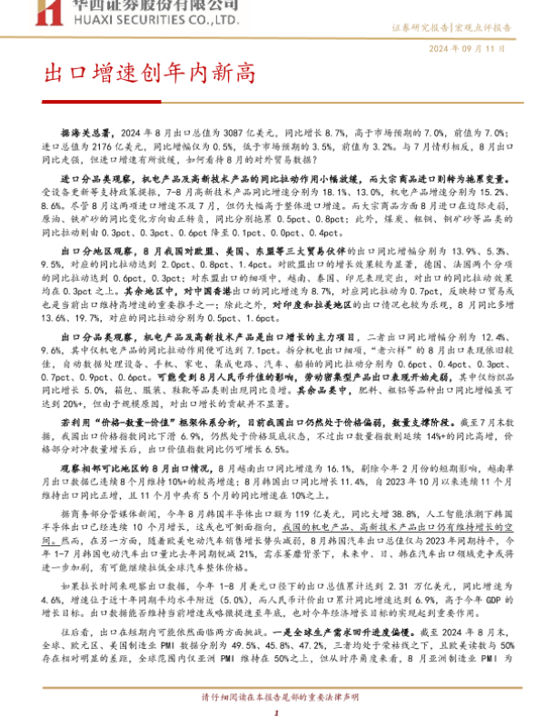 【华西证券】【20240911】宏观点评报告:出口增速创年内新高-10页