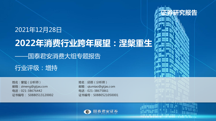 【国泰君安证券】【20211228】2022年消费行业跨年展望:涅槃重生-29页
