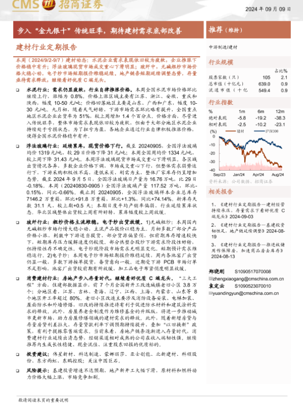 【海通证券】【20240909】建材行业定期报告:步入“金九银十”传统旺季,期待建材需求底部改善-24页