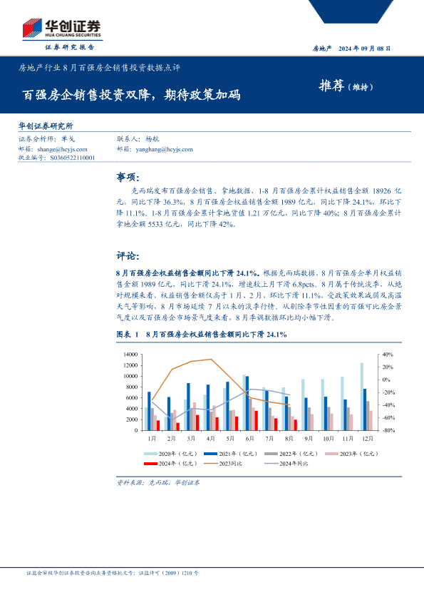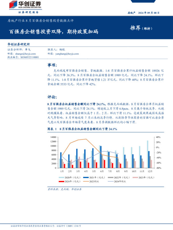 【华创证券】【20240908】房地产行业8月百强房企销售投资数据点评-11页