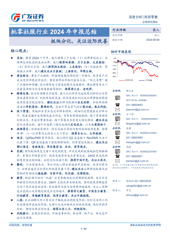 【广发证券】【20240909】批零社服行业2024年中报总结:板块分化,关注边际改善-51页