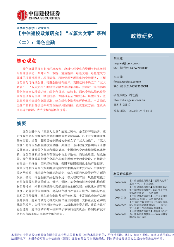 【中信建投证券】【20240908】政策研究:“五篇大文章”系列(二),绿色金融-36页