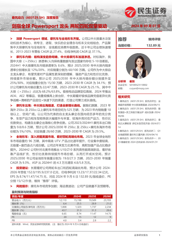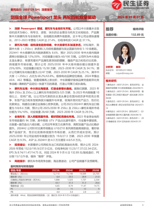 【民生证券】【20240907】春风动力(603129)深度报告:剑指全球Powersport龙头,两轮四轮双擎驱动-57页