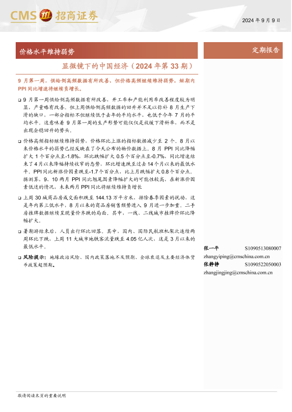 【海通证券】【20240909】显微镜下的中国经济(2024年第33期):价格水平维持弱势-38页