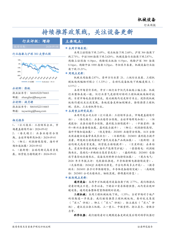 【华安证券】【20240908】机械设备行业周报:持续推荐政策线,关注设备更新-21页