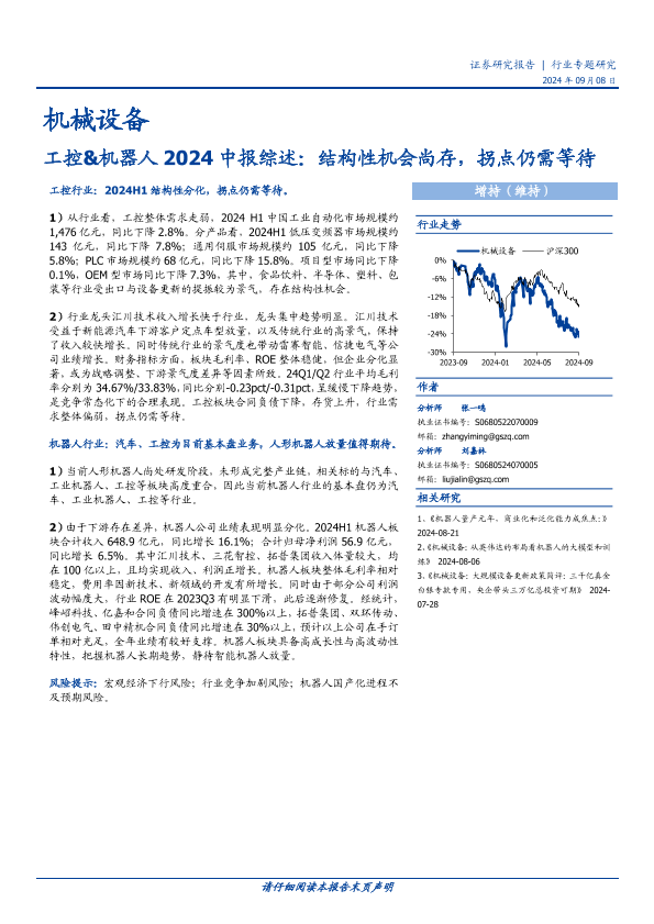 【国盛证券】【20240908】机械设备行业工控&机器人2024中报综述:结构性机会尚存,拐点仍需等待-12页