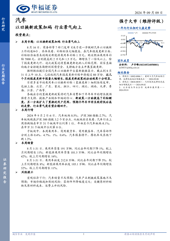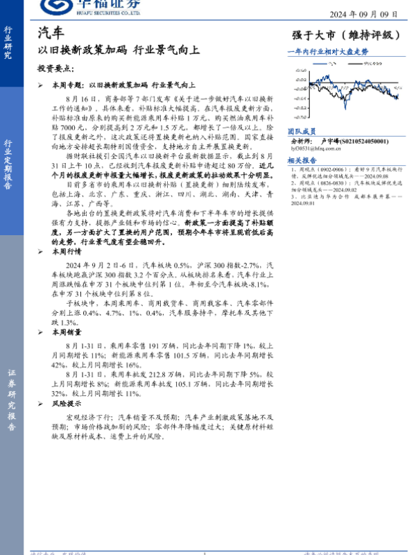 【华福证券】【20240909】汽车行业定期报告:以旧换新政策加码,行业景气向上-9页