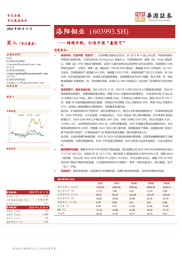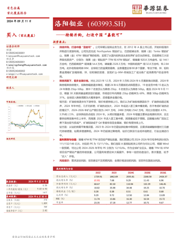【华源证券】【20240911】洛阳钼业(603993)持续并购,打造中国“嘉能可”-13页