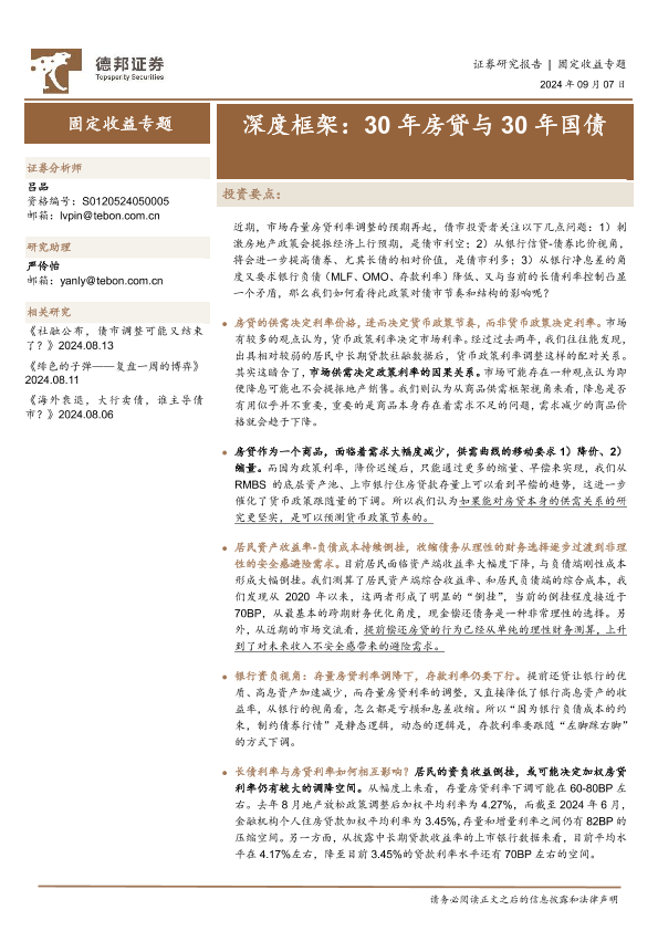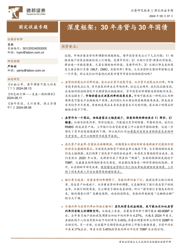 【德邦证券】【20240907】深度框架:30年房贷与30年国债-15页