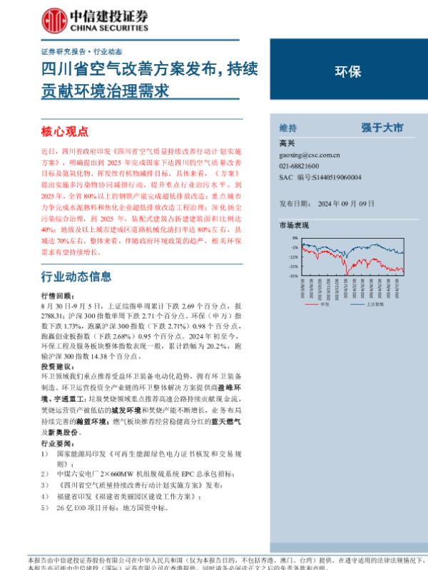 【中信建投证券】【20240909】环保行业:四川省空气改善方案发布,持续贡献环境治理需求-11页