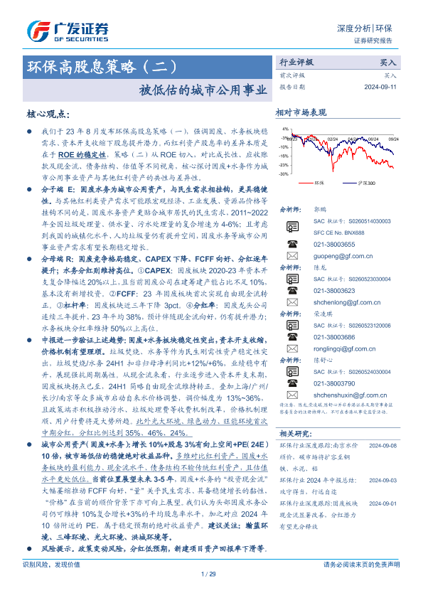 【广发证券】【20240911】环保行业高股息策略(二):被低估的城市公用事业-29页