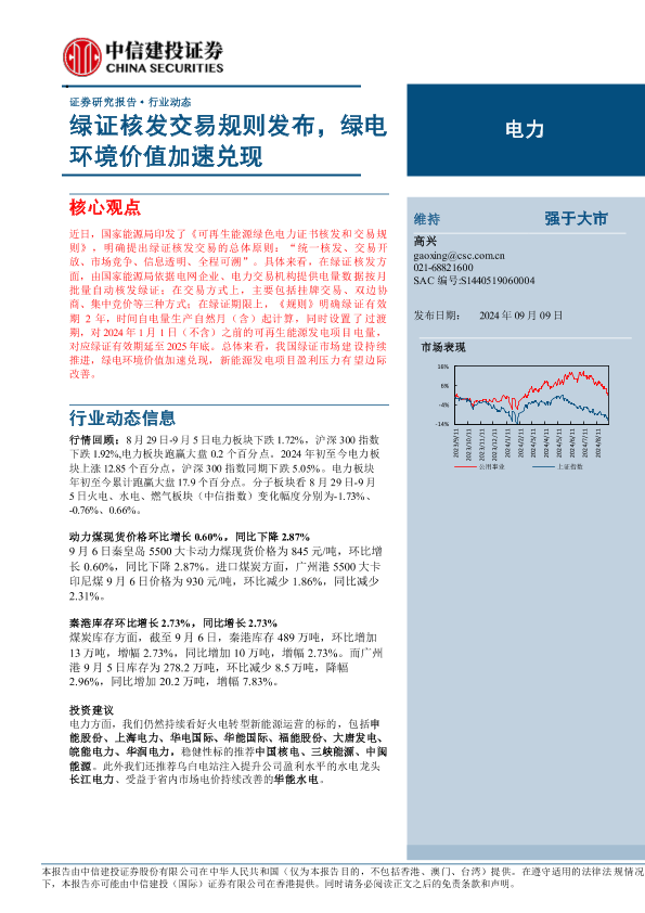 【中信建投证券】【20240909】电力行业:绿证核发交易规则发布,绿电环境价值加速兑现-15页