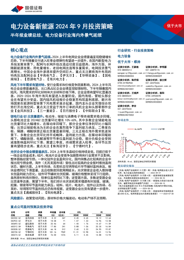 【国信证券】【20240911】电力设备新能源行业2024年9月投资策略:半年报业绩总结,电力设备行业海内外景气延续-21页