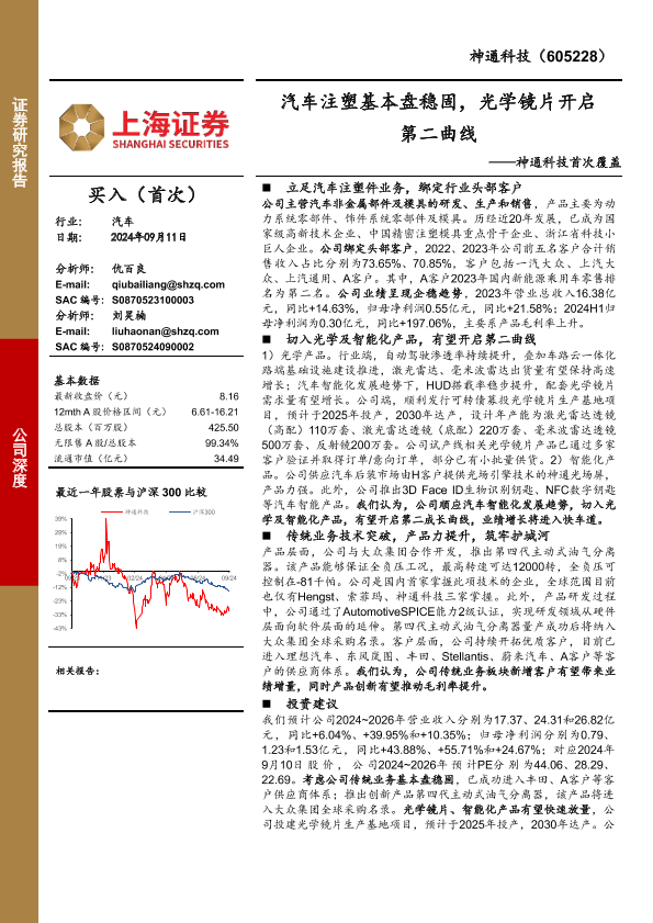 【上海证券】【20240911】神通科技(605228)首次覆盖:汽车注塑基本盘稳固,光学镜片开启第二曲线-24页