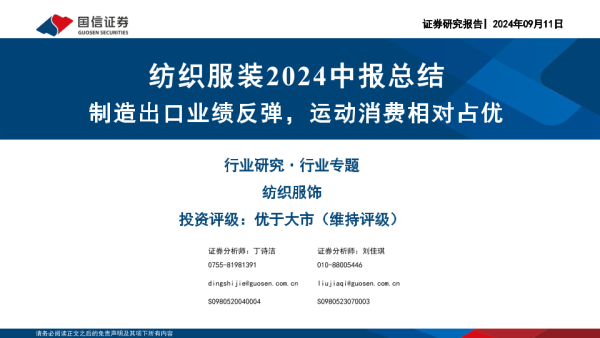 【国信证券】【20240911】纺织服装行业2024中报总结:制造出口业绩反弹,运动消费相对占优-58页