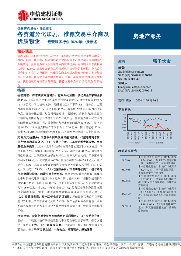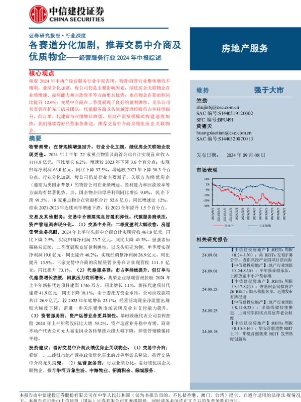 【中信建投证券】【20240908】经营服务行业2024年中报综述:各赛道分化加剧,推荐交易中介商及优质物企-24页