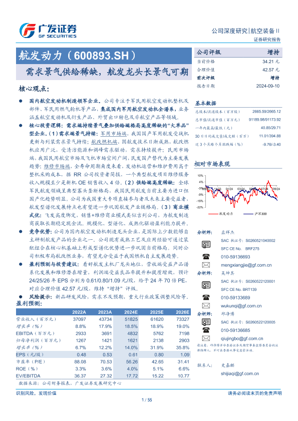 【广发证券】【20240910】航发动力(600893)需求景气供给稀缺,航发龙头长景气可期-55页