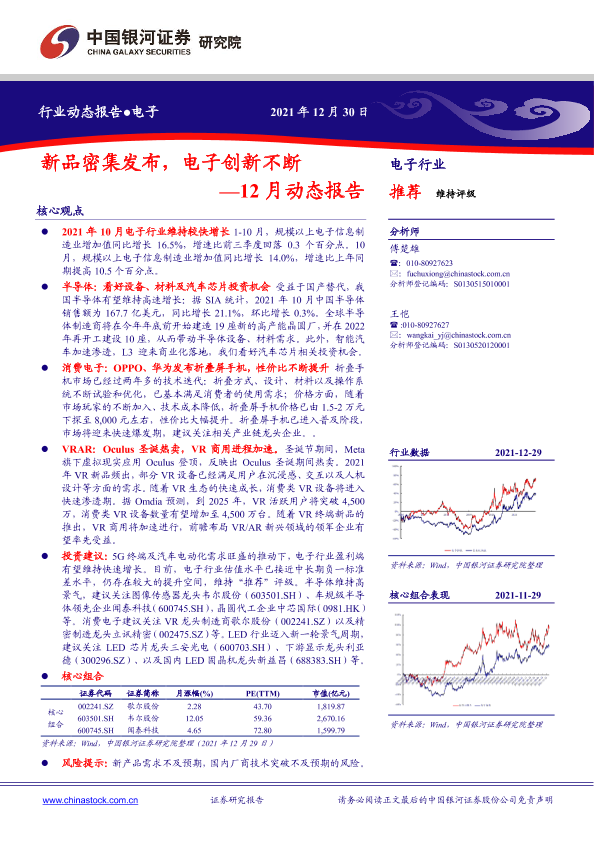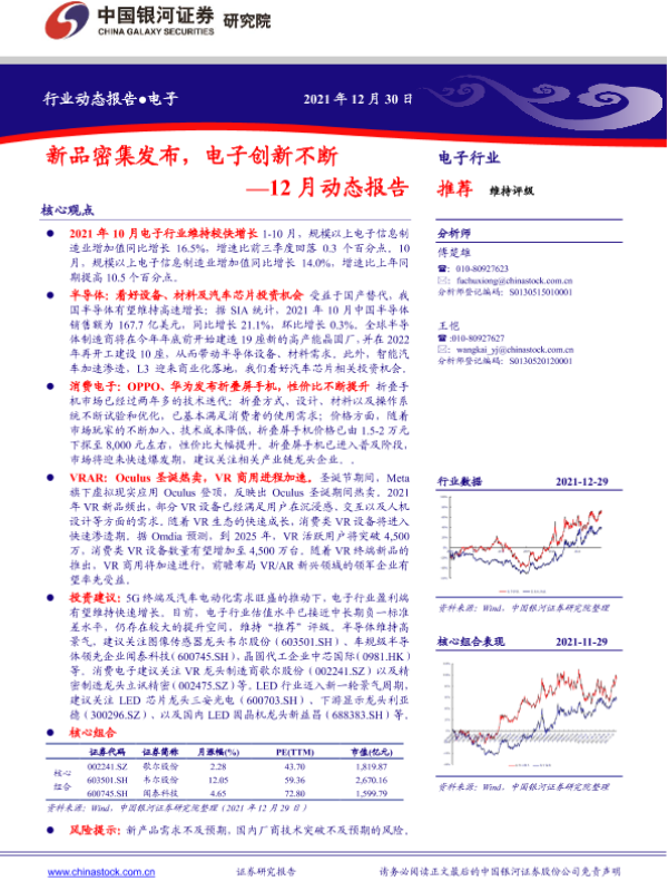 【银河证券】【20211230】电子行业12月动态报告:新品密集发布,电子创新不断-30页