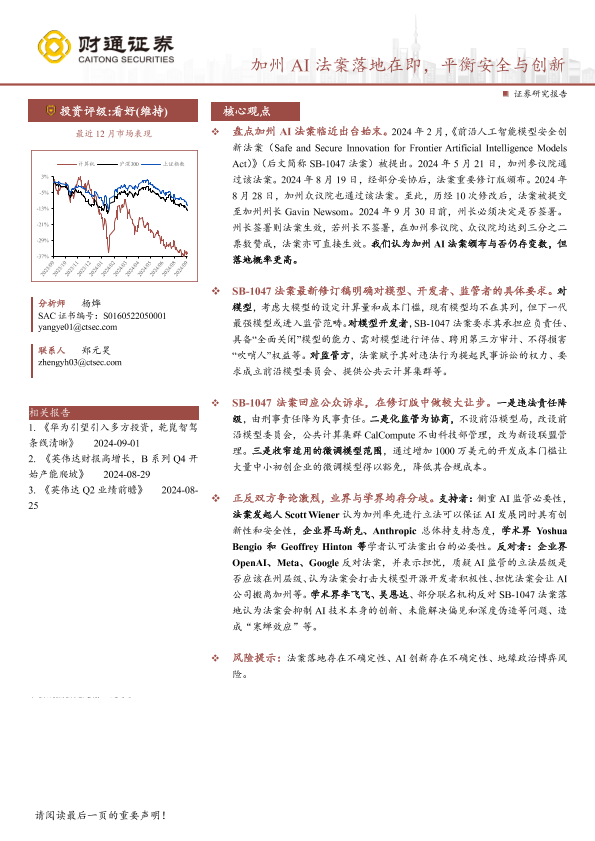 加州AI法案 安全与创新 投资策略 计算机行业 财通证券