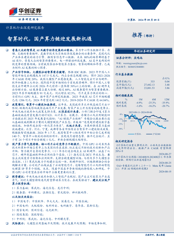 【华创证券】【20240909】计算机行业深度研究报告:智算时代,国产算力链迎发展新机遇-34页