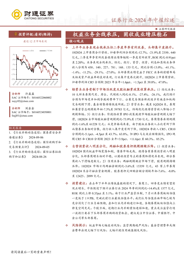 【财通证券】【20240907】证券行业2024年中报综述:权益业务全线承压,固收成业绩压舱石-21页