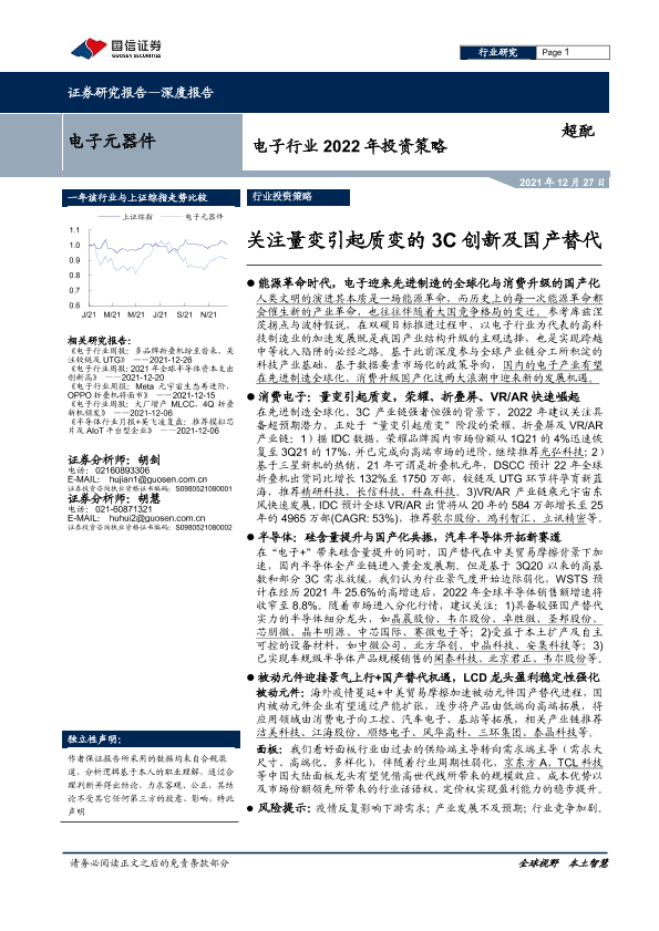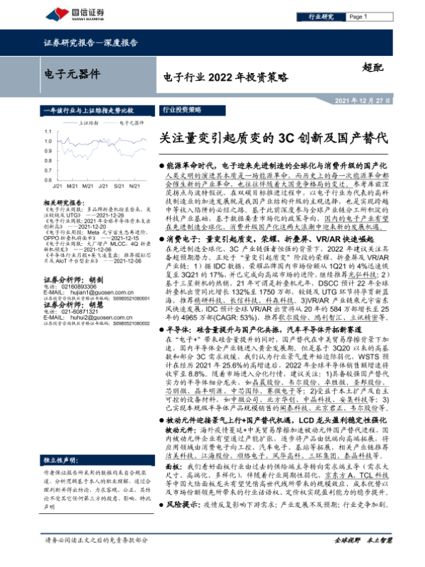 【国信证券】【20211227】电子行业2022年投资策略:关注量变引起质变的3C创新及国产替代-52页