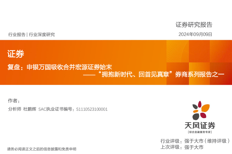 【天风证券】【20240909】证券行业“拥抱新时代、回首见真章”券商系列报告之一:复盘,申银万国吸收合并宏源证券始末-13页
