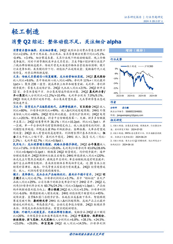 【国盛证券】【20240907】轻工制造行业消费Q2综述:整体动能不足,关注细分alpha-10页