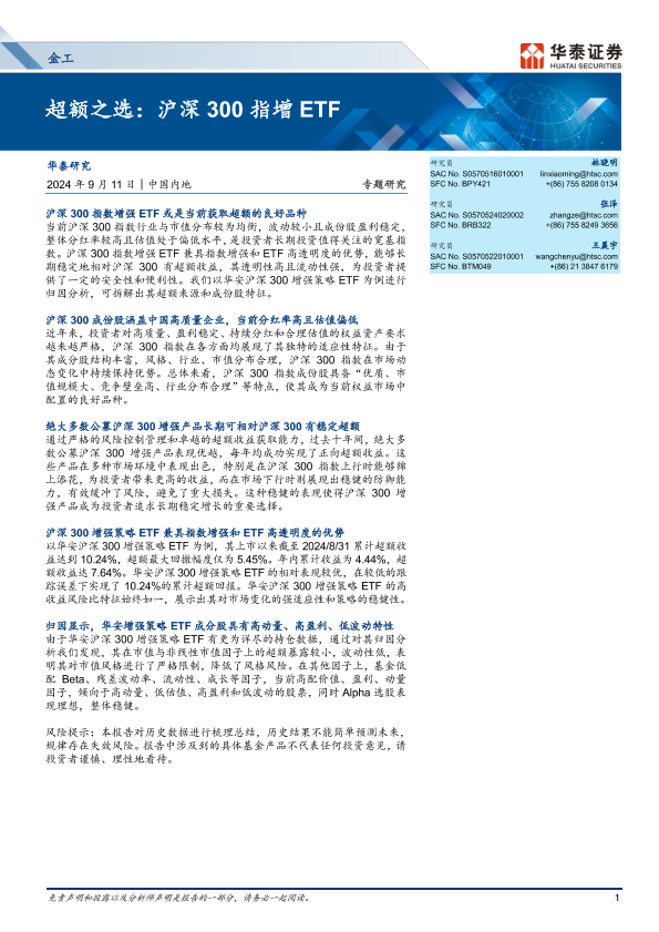 【华泰证券】【20240911】金工专题研究-超额之选:沪深300指增ETF-14页