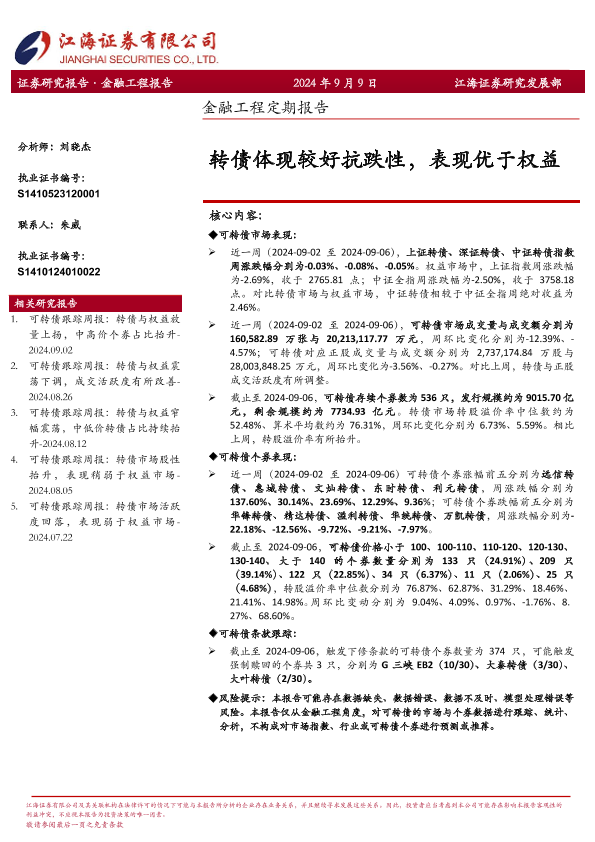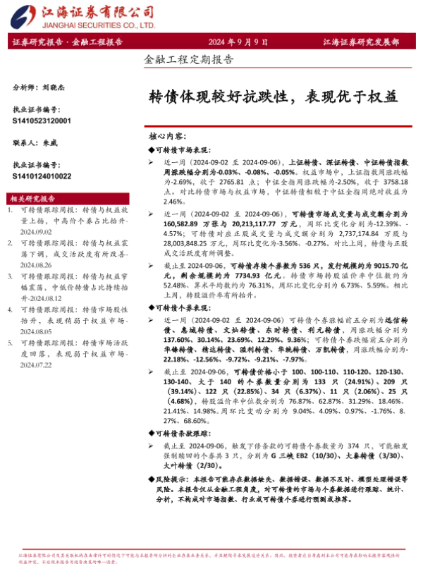 【江海证券】【20240909】金融工程定期报告:转债体现较好抗跌性,表现优于权益-12页