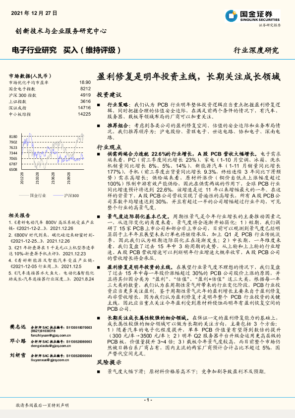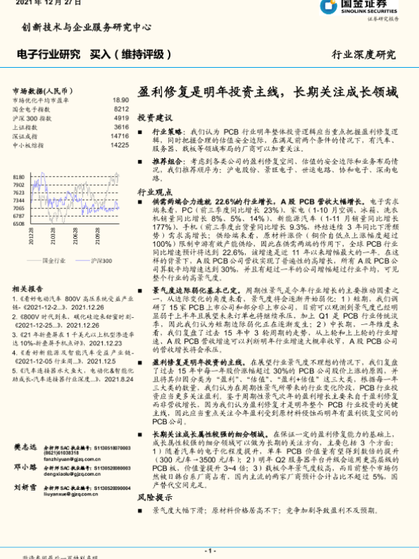 PCB 市场分析 投资建议 电子行业 盈利修复