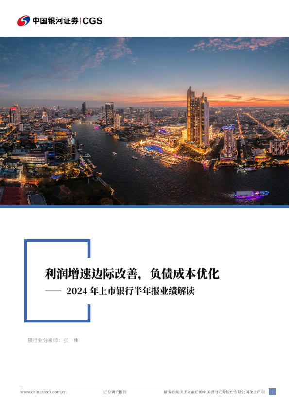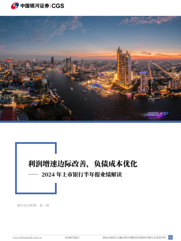 【银河证券】【20240910】银行业2024年上市银行半年报业绩解读:利润增速边际改善,负债成本优化-26页