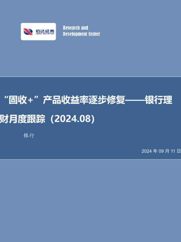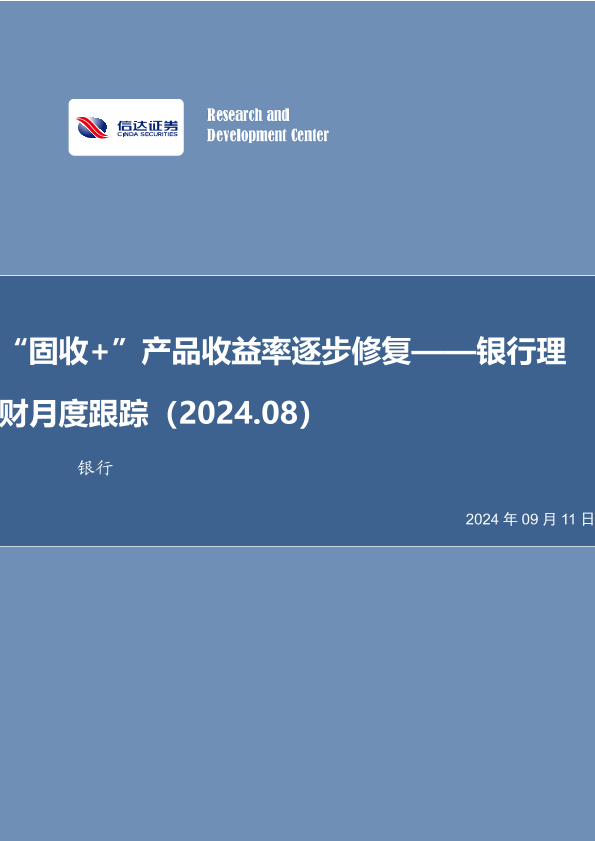 【信达证券】【20240911】银行业理财月度跟踪(2024.08):“固收+”产品收益率逐步修复-27页